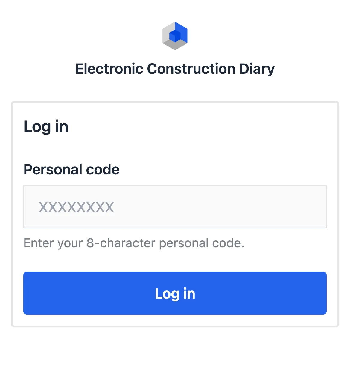To log into the application, workers use only a unique 8-digit personal code provided by the project administrator or supervisor.